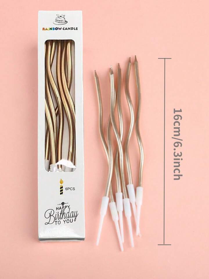 Champagne Twisty Unscented Candles Set – Metallic Curly With Holders for Cake, Cupcake, Wedding, Birthday – Long Thin Champagne Anniversary Decoration