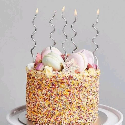 6 count Twisty Birthday Candles Spiral Cake Candles with Holders Metallic Cake Cupcake Candles Long Thin Curly Coil Cake Candles for Birthday, Wedding Party and Cake Decoration (Silver)